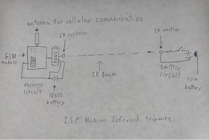 When the IR beam is broken, the Arduino detects the change using an interrupt service routine (ISR). The microcontroller then activates a GSM module, which sends a text message alert to a predefined phone number. The system is designed to remain in a low-power state until the tripwire is triggered. MCU 328p HARDWARE The hardware includes an Arduino Nano (ATmega328P) as the main controller, an infrared LED transmitter circuit, and an infrared receiver circuit. A GSM module (such as SIM800/900 series) is used to send SMS messages when the tripwire is broken. Power is supplied using a rechargeable 18650 lithium-ion battery with a voltage regulator to provide stable operating voltage. Supporting components include resistors, capacitors, transistors or SOFTWARE The software will be written using the Arduino IDE.The program will use hardware interrupts (ISR) to detect changes in the IR receiver signal. Low-power sleep modes will be implemented so the system remains idle until the tripwire is broken. Serial or SPI communication will be used to interface with the GSM module, and existing GSM libraries will handle SMS transmission. DESIGN Fusion 360 will be used to design the mechanical enclosure and mounting hardware. EasyEDA will be used to design schematics and PCB layouts for both the transmitter and receiver circuits. PCBs may be manufactured using JLCPCB. MECHANICAL N/A COMMUNCATION SPI, IR, Serial and GSM |