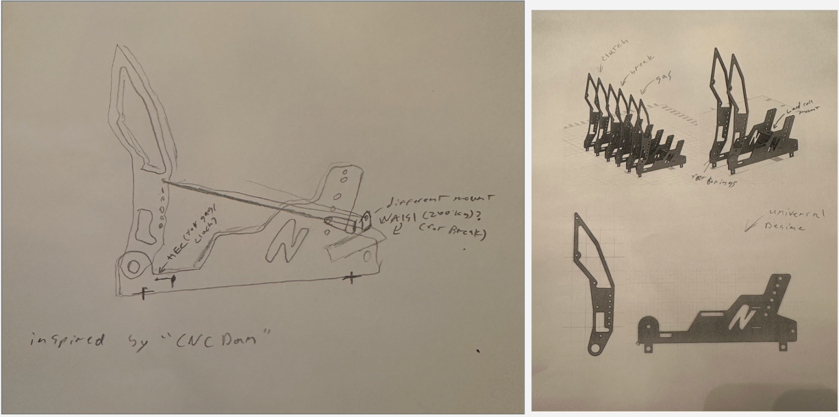 DESCRIPTION The pedals are made of copies of two main parts, the actual pedal, and the pedal base plate. When three copies of these are placed together, I get an accelerator (or gas) pedal, a brake pedal, and a clutch pedal. The clutch and the gas pedal use hall effect sensors to determine the analogue amount of gas I am applying. The break uses a load cell sensor that detects the amount of force. I am putting into the pedal, this is how an actual break works. This will connect to my laptop for a demonstration. MCU 328P (Arduino Pro Mini) HARDWARE ? SOFTWARE ? DESIGN Fusion 360 MECHANICAL Different sizes of nuts and bolts, the different metal plates COMMUNCATION USB |