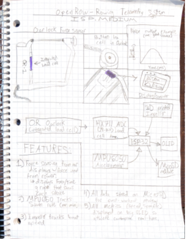 DESCRIPTION openRow will be an on-water, in boat rowing telemetry system that measures an athletes effective Force input into the oar, boat speed in the water, and strokes/minute. All these metrics will be displayed on a OLED that the athlete can view in real-time, and the data from each session is automatically stored on a microSD card. MCU ESP32, because the Force inputs accuracy benefits from the higher clock speed (in comparison to 328P) HARDWARE The force sensor will be integrated into an oarlock, which will be 3D printed in CF-PETG material, for high structural integrity under up to 300 lbs of force from the rower at the peak of the stroke. The force sensor will communicate with the MCU via a HX711 ADC as a load cell amplifier. The SPM will be tracked with a MPU6050 accelerometer due to its low cost and accuracy. Boat speed will be tracked with a 3D printed impeller and reed switch for a consistent accurate output, and all data will be stored using a MicroSD module. Finally, the system will be powered via a Lithium Polymer cell that is able to be charged while in the case. SOFTWARE All code will be in ArduinoIDE on the ESP32. The goal of the software in this project is to be function and provide accurate results. Afterwards, the goal is to make it as lightweight, efficient and streamlined as possible. DESIGN All parts including the Oarlock, Computing/Display Module case, and impeller will be 3D printed with CF-PETG and regular PETG for stronger and more durable parts. A PCB will be made for the computer module via EasyEDA and JLCPCB. As this electronic project will be exposed to a lot of water, the computing/display module case will be splash resistant. Splash resistance of electronics will be the main focus of the design. MECHANICAL None COMMUNCATION All inputs/outputs of the MCU will communicate through I2C. |