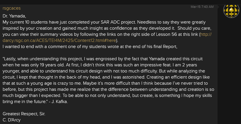 Hackaday: SAR ADC Mitsuru Yamada A Note to ACES from Dr. Yamada ![]() Reflection Quote from J. Kafka (ACES '25)