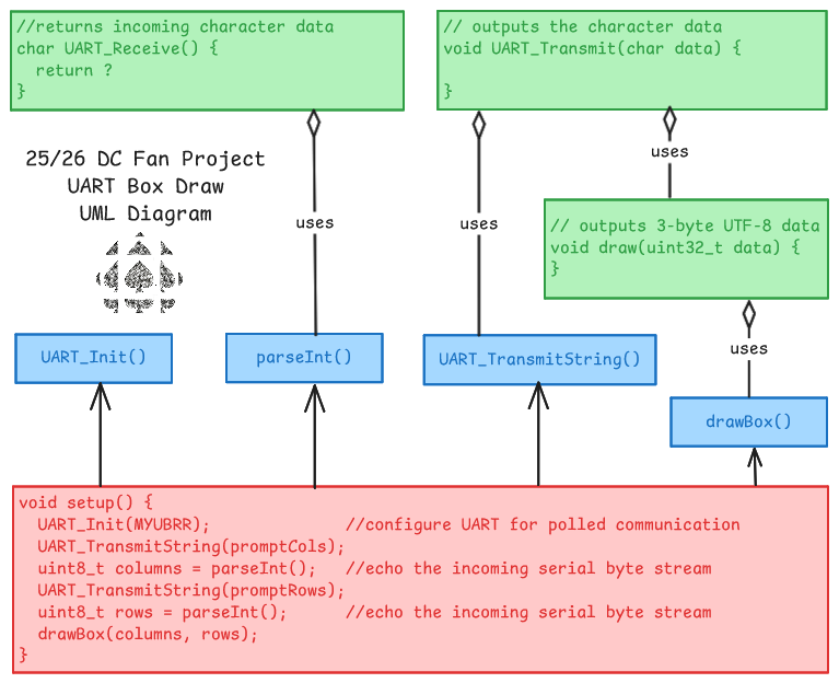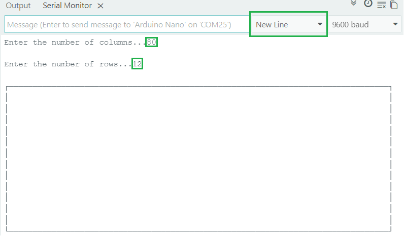 - Convert your register-level UARTDrawBox.ino to the AVR Assembly language equivalent, UARTDrawBox.S. Here is the sample output,