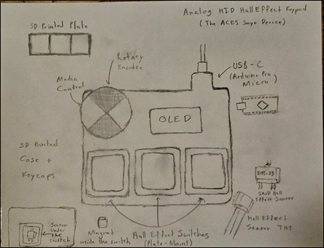 DESCRIPTION The Hall Effect Keypad is a three-key analog input device featuring a rotary encoder and an OLED display. While smaller in scale than my previous 65% keyboard, this project represents a significant step up by shifting focus from simple digital switching to high-speed analog signal processing and interrupt-driven firmware. This device will use Hall Effect (magnetic) sensors instead of mechanical switches. By measuring the magnetic field strength as a key is pressed, the sensors provide continuous analog data regarding the key’s exact displacement. This data is processed by Arduino Pro Micro’s (ATmega32u4) internal ADC, allowing me to implement a rapid trigger algorithm. This firmware logic enables dynamic actuation points and reset thresholds that respond instantly to the velocity of a keypress. The firmware utilizes Hardware Timer Interrupts. This allows the MCU to prioritize sampling the analog sensors at a consistent 1ms interval, ensuring a stable 1000Hz polling rate regardless of the OLED’s processing load. I will be 3D printing a case, designing custom keycaps in Fusion 360, and manufacturing a custom PCB. MCU ATmega32u4 HARDWARE Arduino C (Register Level) SOFTWARE For the software, I will write register-level code to optimize the ADC conversion speed. While I will use the Wire.h library for basic I2C communication and the HID-Project library for the Arduino USB stack for connectivity, the performance logic will be written from scratch. This includes Direct Register Access for high-speed ADC sampling, a custom state machine for the 'Rapid Trigger' magnetic logic, and a manually configured HID Descriptor to force a 1 ms polling rate. DESIGN Fusion 360/KiCad/JLCPCB COMMUNICATION USB HID, I2C, Quadrature Encoding (for the rotary encoder) MECHANICAL Rotary Encoder |