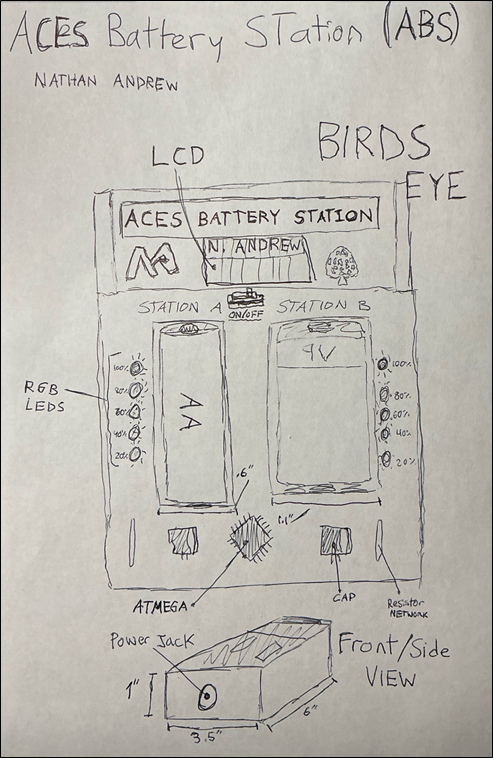DESCRIPTION A dual bay smart charging and testing station designed for both AA and 9 V batteries. The station features a 16×2 LCD display that shows real-time voltage readings, charge levels, and battery status. Two vertical LED bars visually represent each battery’s health, ranging from red (low) to green (fully charged). Both bays charge safely using dedicated smart charger modules, while an ATmega328P microcontroller continuously monitors battery voltage, charging progress, and the overall system. Everything is housed in a custom 3D printed case with a clean layout. MCU 328p DESIGN Front panel and enclosure designed in Fusion 360 and 3D-printed. Parts mapped out in EasyEDA for a custom PCB Mounting holes and air vents made in Fusion 360 for clean assembly. COMMUNICATION I2C for the LCD Display Digital I/O for LED bars. Analog inputs for voltage Serial Connection for debugging MECHANICAL N/A |